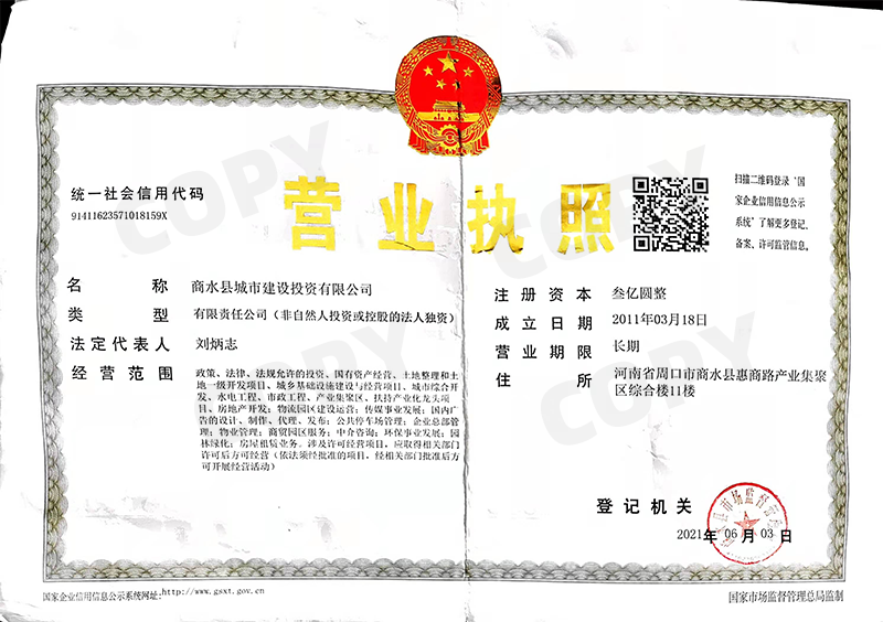 1.商水縣城投興商物業(yè)服務有限公司就商水縣金水湖小區(qū)污水管道施工
